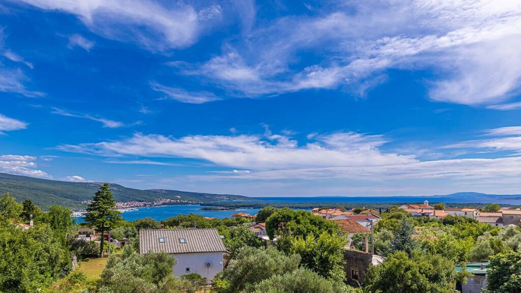 In außergewöhnlich ruhiger Lage nahe der Stadt Krka befindet sich diese modern gestaltete Luxusvilla, die mit ihrem Panoramablick auf das Meer und die vorgelagerten Inseln begeistert und nur 1,5 km von der kristallklaren Küste entfernt liegt. Die Villa erstreckt sich über zwei Etagen und bietet mit einer Gesamtfläche von ca. 200 m² die perfekte Kombination aus Komfort, Eleganz und modernem Stil. Das Erdgeschoss ist als offener Wohnbereich zum Genießen und geselligen Beisammensein gestaltet. Das geräumige Wohnzimmer mit modernem Kamin ist mit der Küche und dem Esszimmer verbunden, und von allen Räumen gelangt man direkt auf die überdachte Terrasse und in den mediterran angelegten Garten. Hier dominieren der Swimmingpool mit Gegenstromanlage, der Whirlpool, der Außengrill und die Sonnenterrasse und schaffen eine Atmosphäre absoluter Privatsphäre und Entspannung. Im Erdgeschoss befinden sich außerdem ein weiteres Badezimmer, ein WC und eine elegante Sauna für Momente der Ruhe. Im Obergeschoss befinden sich drei komfortable Schlafzimmer, jeweils mit eigenem Bad und Zugang zu einer überdachten Terrasse mit atemberaubendem Blick auf das Meer und die umliegende Natur. Ein praktischer Hauswirtschaftsraum rundet die Funktionalität ab. Das 615 m² große Grundstück wurde sorgfältig angelegt und bietet überdachte Parkplätze unter einer Pergola, eine Ladestation für Elektroautos sowie eine üppige Bepflanzung, die sich harmonisch in das moderne Design der Villa einfügt. Die Villa wurde mit hochwertigen Materialien und modernster Technik erbaut und ist mit einer Daikin-Klimaanlage, Fußbodenheizung, Videoüberwachung und einer Alarmanlage ausgestattet. Auf dem Dach befinden sich Solarpaneele, die den eigenen Strom erzeugen und so die Energieeffizienz und Nachhaltigkeit zusätzlich unterstreichen. Diese Immobilie ist die ideale Wahl für alle, die ein luxuriöses und ruhiges Zuhause in Meeresnähe suchen, und gleichzeitig eine erstklassige Investition für die touristische Vermietung im Premiumsegment. Nutzen Sie diese Gelegenheit, kontaktieren Sie uns und vereinbaren Sie einen Besichtigungstermin - Ihr sonniges Refugium erwartet Sie hier!