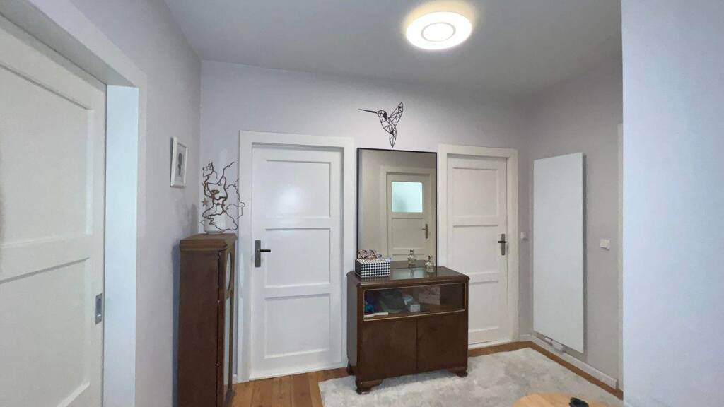 Die massiven Decken und Wände wirken im Sommer als thermische Speichermasse und sorgen für ein angenehm kühles Raumklima. Durch die verzögerte Wärmeaufnahme bleibt die Wohnung deutlich kühler als viele vergleichbare Neubauten.