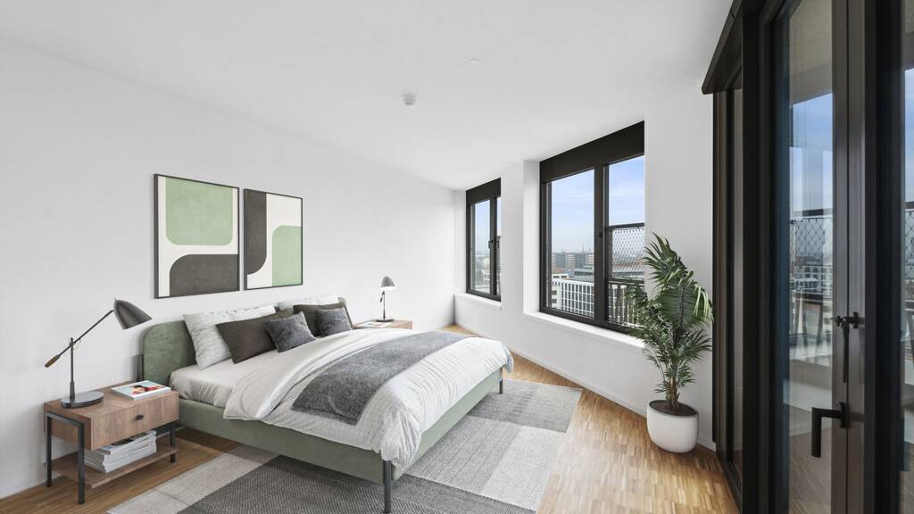 Moderne Architektur trifft auf exklusiven Komfort im Herzen Berlins: Der Turm beeindruckt mit einer zeitgemäßen Außenfassade und Wohnungen mit großen Fensterfronten. Jede Wohnung ist mit einer Einbauküche und zeitloser Badkeramik ausgestattet. Die Fußbodenheizung sorgt für angenehme Wärme. Die Wohnungen im Turm des Europacity Ensembles Spring bieten den Bewohnern ein stilvolles Zuhause in zentraler Lage mit perfekter Anbindung.
