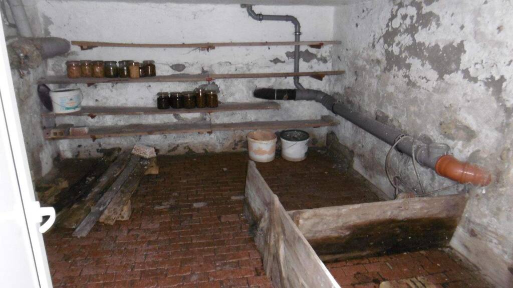 Das Gebäude ist nicht unterkellert; lediglich die Waschküche von ca. 10 m² ist als Kriechkeller von außen begehbar. Zum Anwesen gehören außerdem ein Nebengebäude, eine Waschküche, eine Scheune mit Stall, eine Werkstatt sowie eine Abstellmöglichkeit für Fahrräder. Eine Garage befindet sich rückseitig und ist über eine andere Straße erreichbar Das Dach ist mit Dachsteinen von ca. 1957 gedeckt, die Lattung und das Gebälk stammen ebenfalls aus dieser Zeit.