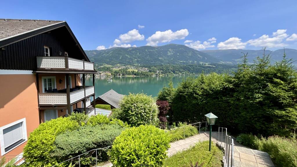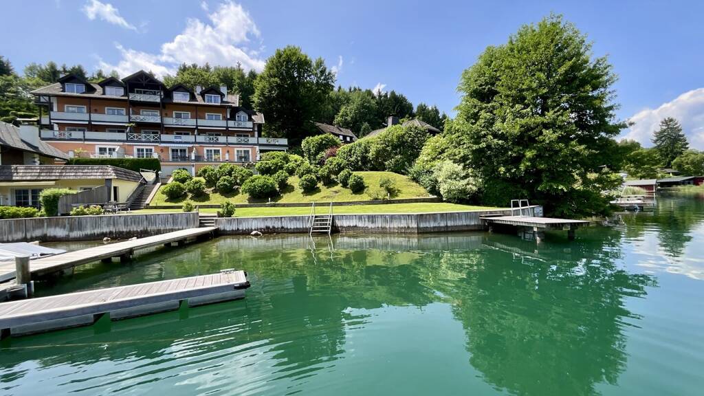 Es empfängt Sie ein geräumiger Garderobenbereich/Vorraum, der Sie in die gemütlichen Zimmer/Räumlichkeiten der Wohnung führt. Das Wohnzimmer mit Essbereich und einem Kaminofen (welcher Ihnen wohlige Wärme und romantische Augenblicke garantiert) sowie die fantastische Aussicht auf den See und die Berge wird Sie begeistern. Diese Kulisse ist spektakulär! Eine separate Küche mit Speis, zwei Schlafzimmer (eines davon hat einen Zugang auf die Terrasse), ein Bad mit Dusche und ein separates WC runden diesen perfekten Wohn(t)raum ab. Die Terrasse, welche ein Highlight von sehr vielen Highlights bei dieser Immobilie darstellt, ist ein Traum - genießen Sie Ihr Leben und kosten es in vollen Zügen aus. Der See liegt Ihnen zu Füßen! PHÄNOMENAL UND EINMALIG! Hier offenbart sich in jeglicher Hinsicht eine der schönsten Naturkulissen die es gibt.