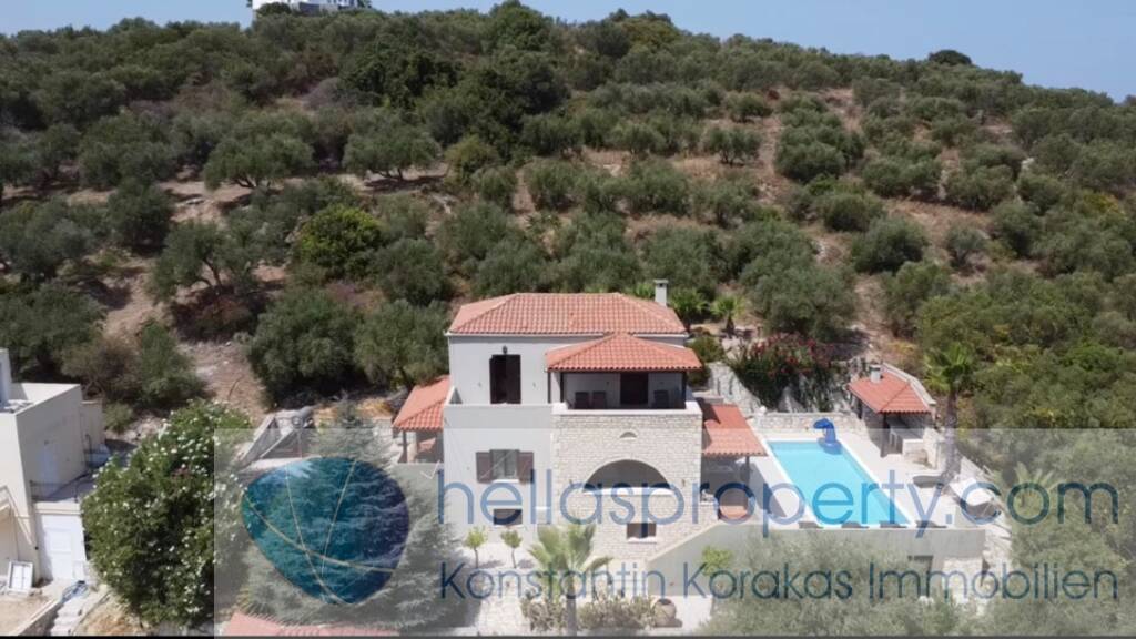 - Panoramablick auf das Meer und Berge - Klimaanlage - Autonomes Wärmesystem - Balkone - Grillen - Stadtblick - Cosmote-Telefonleitung - Ausgestattete Garage - Kamin - Garage - Garten - Internetverbindung - Whirlpool - Blick auf die Berge - Geldautomat in der Nähe - Olivenbäume - Parkplatz im Freien - Pergolen - Telefonleitung - Privater Pool - Blick auf das Meer, die Berge und die Landschaft - Steinmauer - Schwimmbad - Telefonanschluss und Internet - Drei Etagen - W-lan