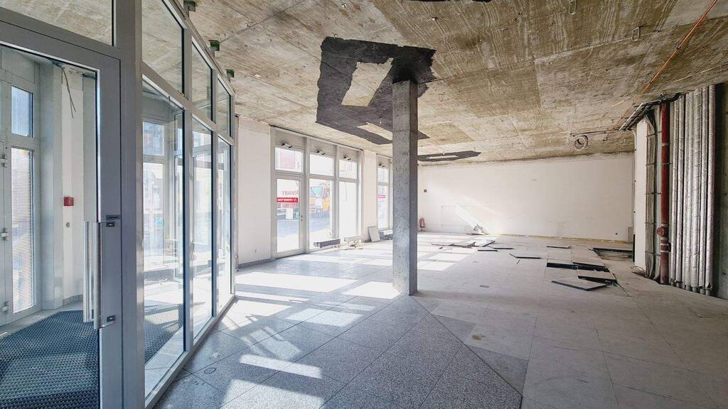 Die Fläche befindet sich in einem hochwertigen Neubau in prominenter Ecklage - ursprünglich für eine Bank konzipiert. Aktuell wird die Fläche entkernt und für eine neue Nutzung vorbereitet. Neben einem repräsentativen Eingang direkt an der Ecke steht ein Seiteneingang sowie ein Personaleingang zur Verfügung. Sanitärbereiche sind im hinteren Bereich geplant. Ansonsten ist der Raum frei begehbar und von den Schaufenstern einsehbar. Je nach Nutzung ist eine individuelle Raumaufteilung leicht möglich. Der Fußboden wird als Estrich vorbereitet und kann ebenso im Rahmen der Verhandlungen gestaltet werden.