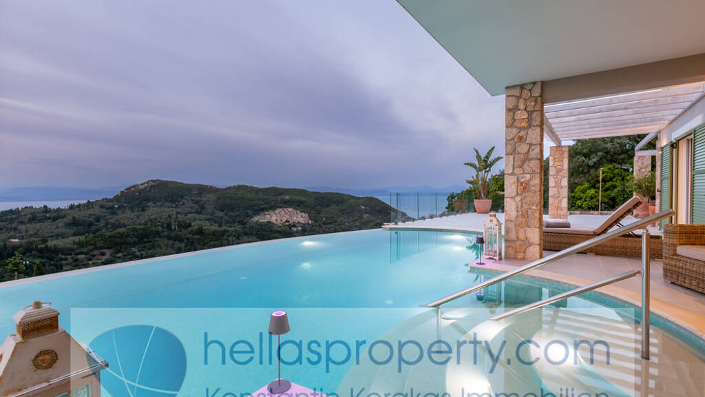 Die Villa genießt einen atemberaubenden Blick auf das Meer und die Küste über das Wasser bis zu den Inseln Erikousa und Othonoi und befindet sich in einer großartigen Position, um die wunderschönen Sonnenuntergänge zu genießen.