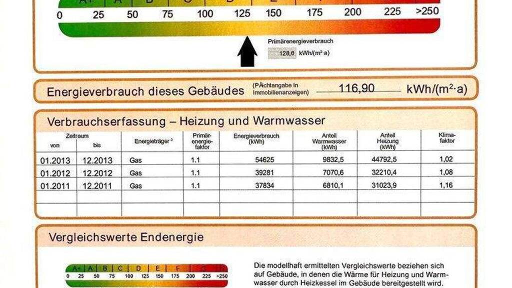 Die Wohnungen im EG und DG haben jeweils eine separate Gasheizung (im DG von 2016, EG von 2013). Der Energieausweis wird bei Besichtigung vorgelegt.