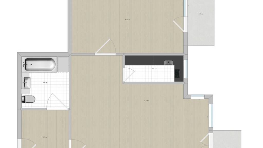 - Duplexparkplatz - Laminat im Flur und den zwei Zimmern - Fliesen in Küche und Bad - zwei Balkone - Abstellraum im Keller