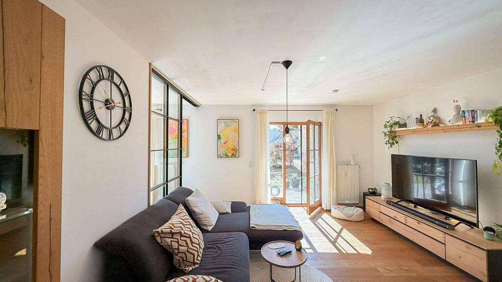 Diese charmante 3-Zimmer-Erdgeschosswohnung aus dem Baujahr 2002 überzeugt durch eine durchdachte Raumaufteilung, eine sonnige Terrasse mit Gartenanteil sowie hochwertige, geschmackvolle Schreiner-Einbauten.