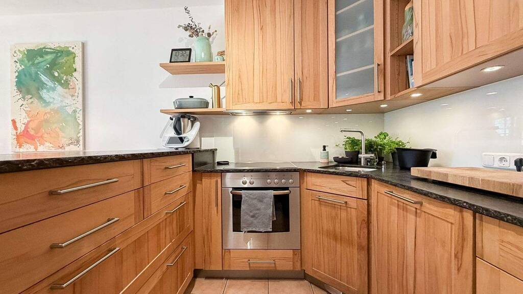 Auf ca. 76,56 m² Wohnfläche bietet sie ein stilvolles Wohnambiente mit geöltem Eichenparkett, einer hochwertigen Einbauküche mit Massivholzfronten und einem großzügig gestalteten Badezimmer. Zwei gut geschnittene (Schlaf-)Räume ergänzen das stimmige Raumkonzept ideal.