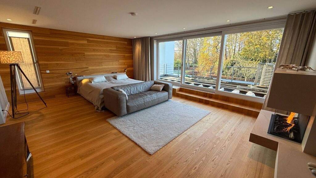 Die Immobilie bietet insgesamt rund 397 m² Wohnfläche verteilt auf Erd- und Staffelgeschoss sowie ca. 185 m² Nutzfläche, 123 m² Tiefgarage (4 Plätze) und 191 m² Technikfläche. Die großzügigen Grundrisse, die barrierearme Bauweise und die hochwertige technische Ausstattung gewährleisten ein zeitgemäßes, komfortables Wohnen.