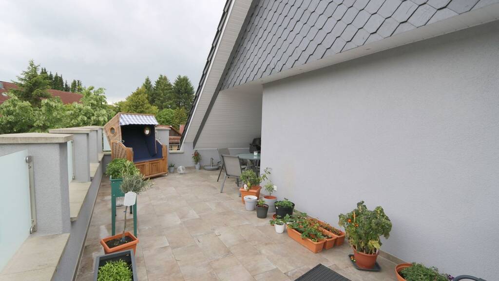 > großzügige, teils überdachte Dachterrasse - mit viel Platz für Sitzmöbel und Pflanzen