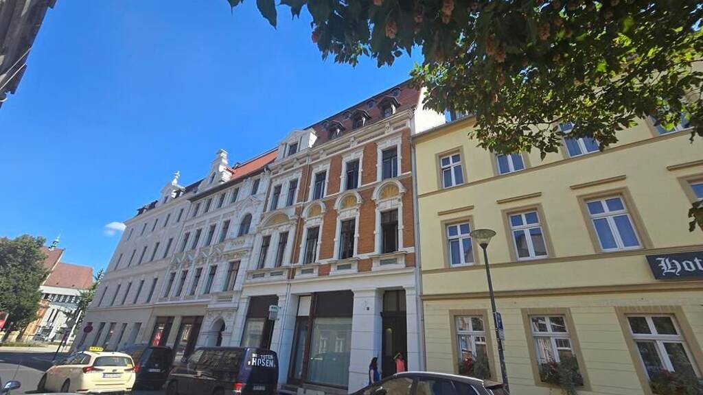 Zu verkaufen steht ein denkmalgeschütztes Mehrfamilien-Geschäftshaus aus Gründerzeit. Die denkmalgeschützte Sanierung fand im Jahr 1993 statt. Das Haus ist unterkellert, dreigeschossig mit ausgebautem Dach. Spitzboden ist vorhanden. Insgesamt sind 4 Wohneinheiten vorhanden mit einer Wohnfläche über 306,82 qm und zwei Gewerbeeinheiten im Erdgeschoss mit einer Nutzfläche von insgesamt 93,62 qm, Gesamtfläche des Hauses 400,44 qm. Im Erdgeschoss befinden sich zwei Gewerbeeinheiten, im 1.OG und im 2.OG jeweils eine großzügige 4-Zimmerwohnung und im 3.OG sind noch zwei kleiner Wohnungen. Das Haus verfügt über eine Gas-Zentralheizung mit zentraler Warmwasservorbereitung. Alle Medien vorhanden. Hausverwaltung und Hausmeisterdienst Vorort vorhanden.