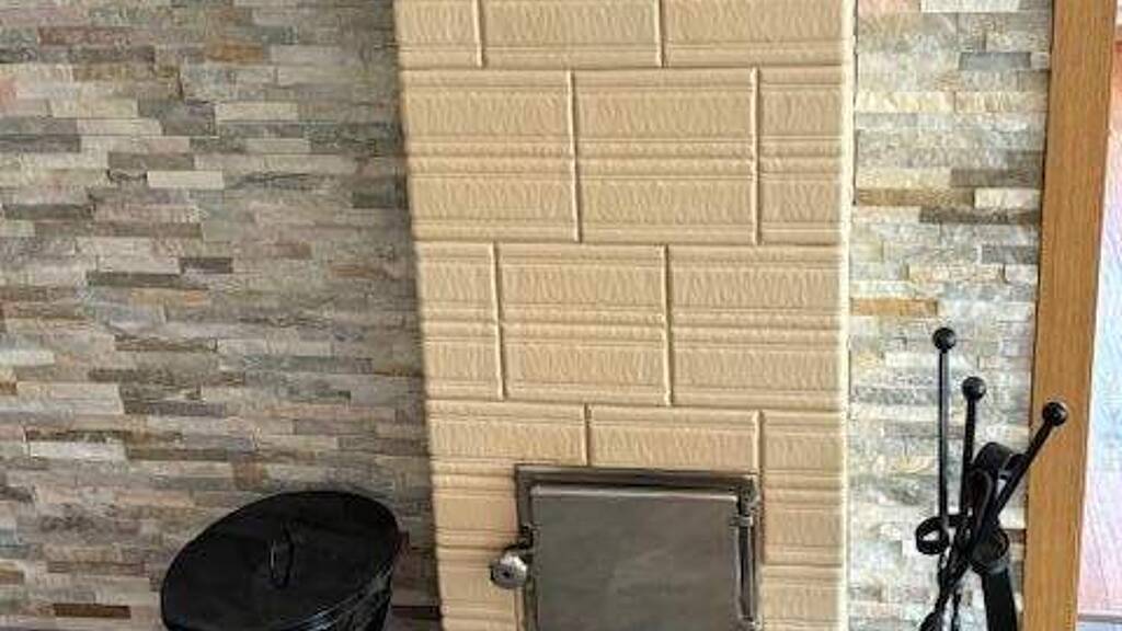 Terrasse, Kachelofen wurde gereinigt und saniert. Kamin neu und im Außenbereich verblecht. Fenster Holz-Alu mit