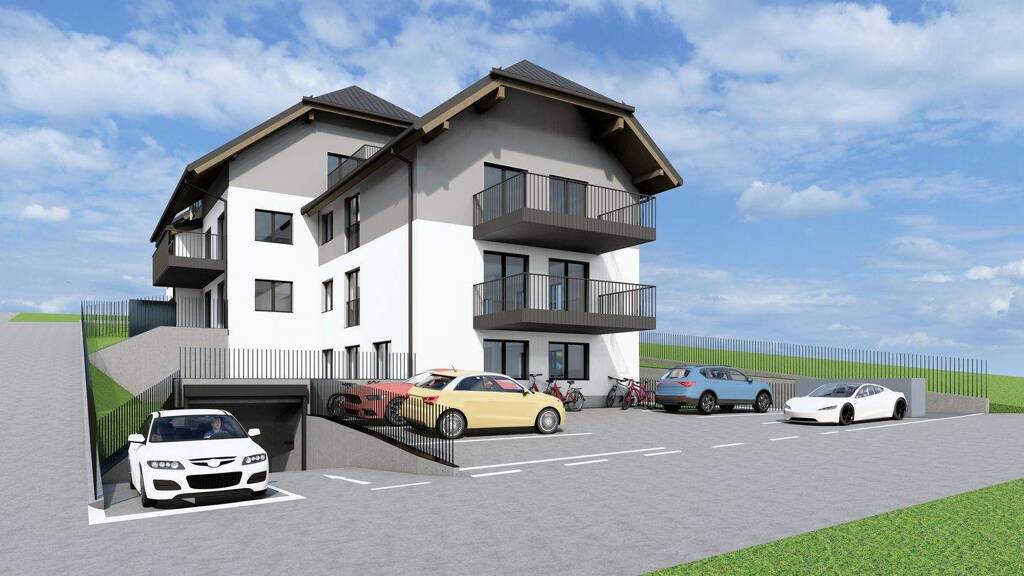 Umgeben von Einfamilienhäusern entsteht direkt im Grünen ein Mehrparteienhaus mit insgesamt 9 Wohneinheiten und tollem Ausblick auf die Stadt Salzburg.