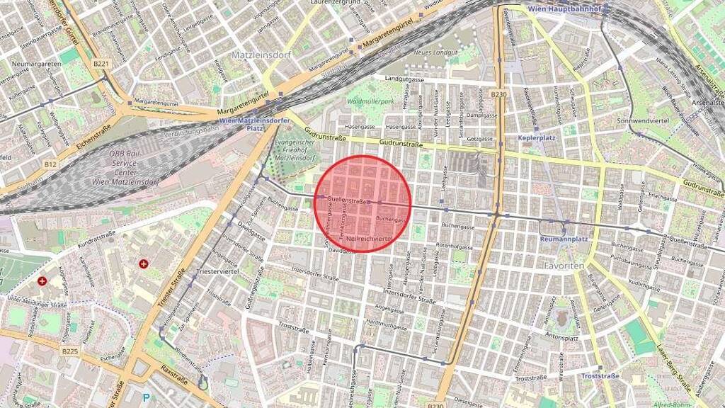 Die Lage: - gute öffentliche Anbindungen - Straßenbahnlinien 1, 6 und 18 (1 Gehminuten) - Buslinien 7A (5 Gehminuten) und 14A (8 Gehminuten) - viele kleine Parkanlagen in unmittelbarer Nähe - unweit zum Matzleinsdorferplatz, Quellenplatz und Wienerberg - zahlreiche Cafés und Einkaufsmöglichkeiten
