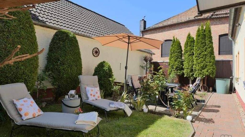 ### Please note the availability date! Bitte das Verfügbarkeitsdatum beachten! ### große möblierte Wohnung in ruhiger Lage logistisch günstig zur A14 und A2; WLAN inklusive; separater Hauseingang; großes Wohnzimmer mit Eckcouch, Sideboard, TV und großesm Esstisch vor Küche und Ausgang zum ruhigen Garten hinter dem Haus mit kleiner Liegewiese und Gartenmöbeln; separate Küche mit EBK und kleinem Esstisch; großes Schlafzimmer mit Doppelbett, Kommode und Spiegel; Bad mit Dusche, Eckwanne, Waschmaschine und WC; Wohnungsflur mit Garderobe; Pauschalmiete 890,00 Euro bei 1 Person, Pauschalmiete 1.120,00 Euro bei 2 Personen, Vermietung an max. 2 Personen; Kaution 1.200,00, Endreinigungspauschale 120 Euro; Mindestmietdauer 3 Monate; Pflichtangaben zum Energieausweis: Energieausweis gültig bis: 19.05.2035; Baujahr Gebäude: 1890; Energieausweis: nach Verbrauch; Energieverbrauch: 133.43 kWh/(m²a); Energieeffizienzklasse: E; Primärer Energieträger: Heizöl