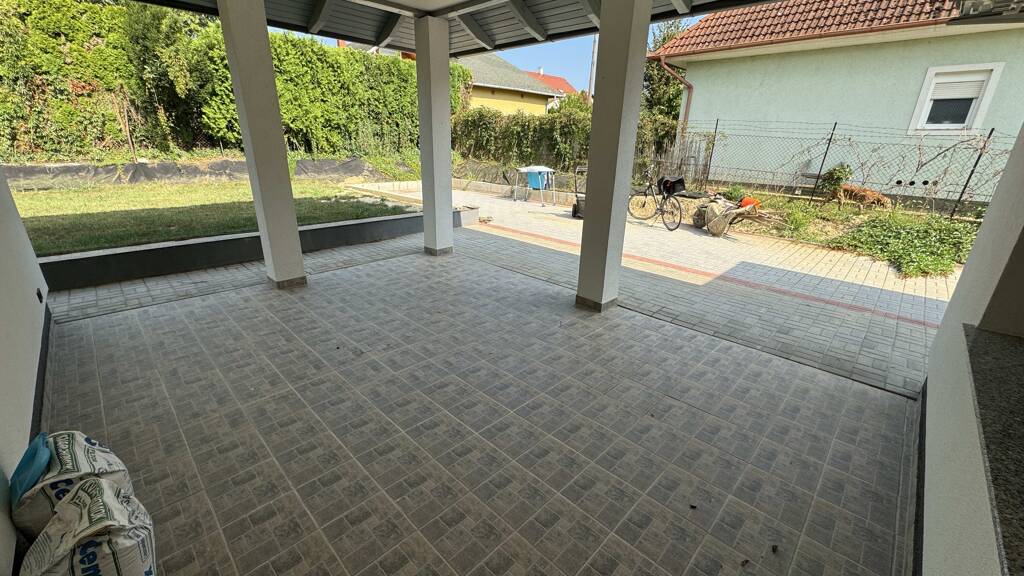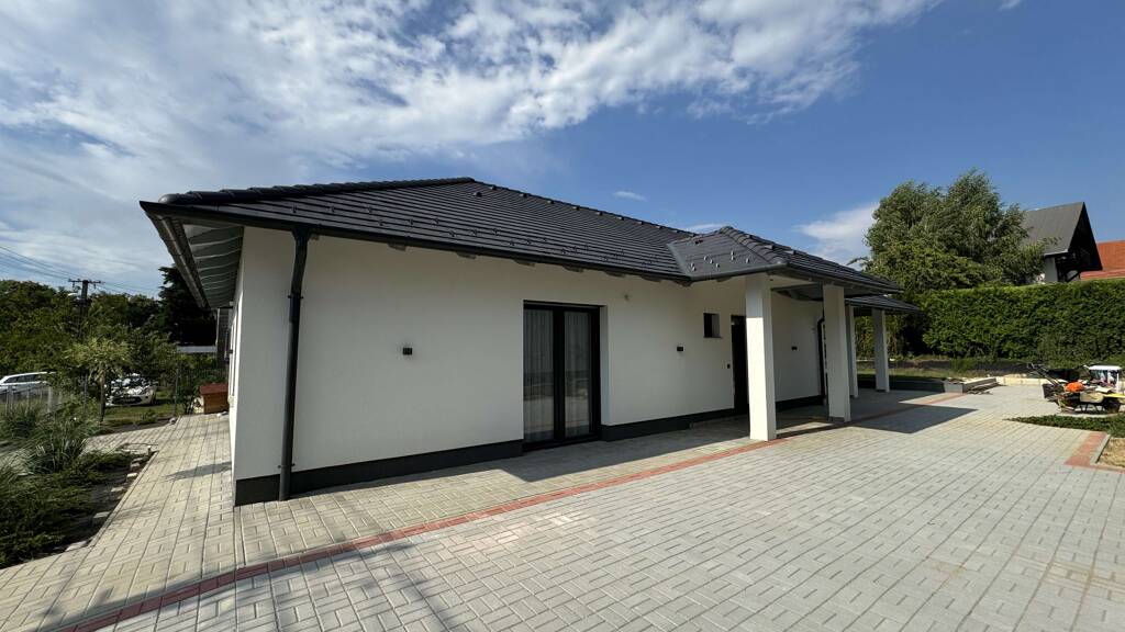 Auf einem 644 m² großen Grundstück steht ein 120 m² großes Familienhaus mit 2 Stellplätzen und Garage. Die Aufteilung umfasst ein Wohnzimmer mit offener Küche, 2 Schlafzimmer, eine Garderobe und einen Hauswirtschaftsraum sowie ein Badezimmer mit Badewanne, eingebauter Dusche und WC, zusätzlich ein Gäste-WC und einen Flur. Im Anwesen wurde eine große 30 m² Garage mit elektrischem Tor eingerichtet. Auch das Tor an der Garagenauffahrt ist elektrisch gesteuert. Im Hof wurde ein weiterer Stellplatz geschaffen, der im Frühjahr 2024 gepflastert wurde. Die Gartenarbeiten sind im Gange. An der Rückseite des Hauses befindet sich eine große überdachte Terrasse, die dank ihrer Gestaltung einen privaten Raum für Aktivitäten im Freien bietet. Das Haus wurde 2020 gebaut, mit 30 cm dicken Ziegelwänden und 16 cm Isolierung. Das Dach ist mit anthrazitgrauen Ziegeln gedeckt, und die Decke ist ebenfalls vollständig isoliert. Die Zimmer sind mit Laminatboden, die übrigen Räume mit Keramikfliesen ausgelegt. Alle Fenster sind mit Mehrkammerscheiben isoliert. Jedes Fenster ist mit Granitfensterbänken, Aluminiumjalousien und Insektenschutz ausgestattet. Die Heizung erfolgt über eine Gastherme mit Heizkörpern und Fußbodenheizung. Das Wasserleitungssystem ist mit einem Wasserenthärter ausgestattet. Das Haus ist mit 2 AUX Klima-Anlagen ausgestattet, die sowohl kühlen als auch heizen können. Die Immobilie wird komplett möbliert und mit allen Geräten verkauft.