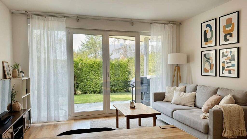 Das Herzstück bildet der helle Wohn- und Essbereich mit bodentiefen Fenstern, der direkt auf die großzügige Terrasse mit Garten führt. Hier entstehen Wohnmomente mit Seltenheitswert - mitten in der Stadt und doch privat.