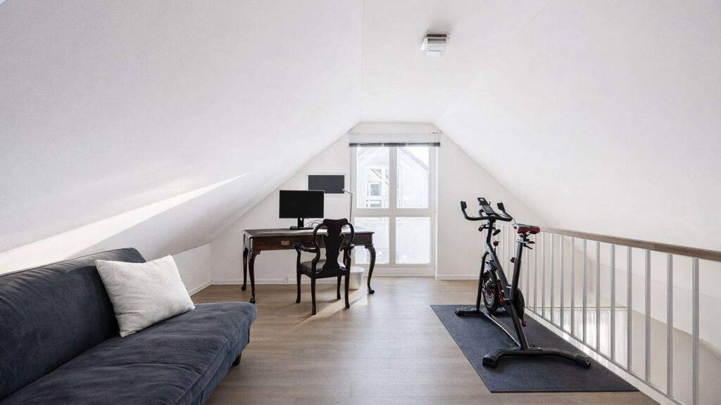 Auf der oberen Etage erwartet Sie ein offener Galeriebereich, der sich hervorragend als Homeoffice oder Leseecke eignet und bequem über eine elegante Treppe erreichbar ist. Die Wohnung überzeugt durch ihre hochwertige Ausstattung und zahlreiche stilvolle Details, die in allen Räumen harmonisch aufeinander abgestimmt sind. Edles Parkett in den Wohnräumen sorgt für eine warme, einladende Atmosphäre.
