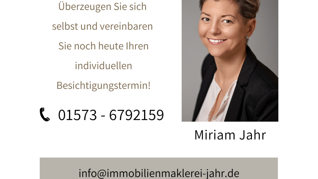 Die Maklerprovision bei Kauf beträgt 3,57% inkl. MwSt. und ist fällig und verdient bei notariellem Kaufvertrag. Mit dem Verkäufer ist eine Provision in gleicher Höhe vertraglich vereinbart. Die Informationen und Daten stammen ausschließlich vom Eigentümer. Die Firma Immobilienmaklerei Jahr übernimmt keine Haftung oder Garantie für die Aktualität, Richtigkeit und Vollständigkeit der zur Verfügung gestellten Informationen und Daten. Das Baujahr und die Wohnfläche wurden von uns nicht geprüft und sind somit ohne Gewähr. Grundrisse sind zur Maßentnahme nicht geeignet. Die Weitergabe dieses Exposés an Dritte, ohne unsere Zustimmung, löst gegebenenfalls Provisions- bzw. Schadensansprüche aus.