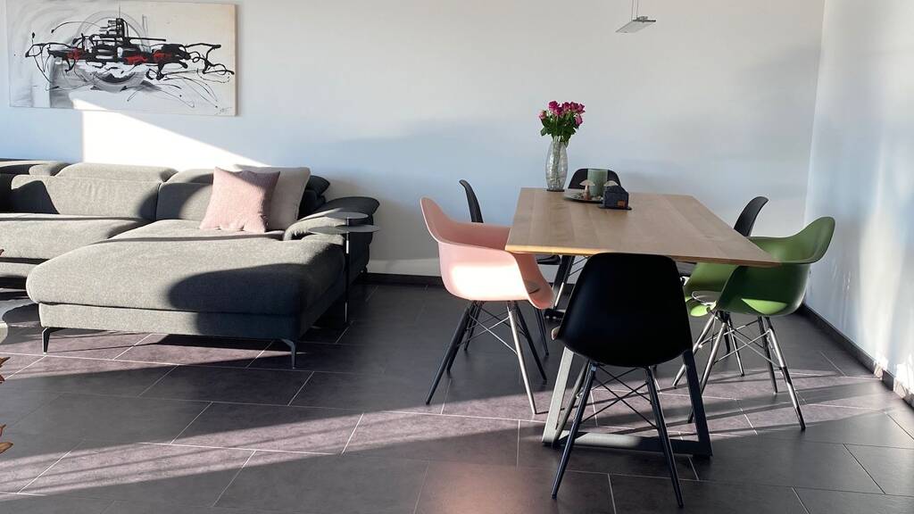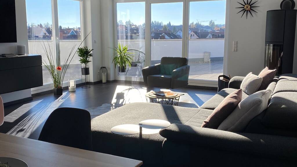 Dieses außergewöhnliche und lichtdurchflutete Penthouse befindet sich in sonniger Lage – markant „on top“ einer modernen Wohnanlage im Herzen des Stadtbezirks VS-Schwenningen und ist bequem über einen Aufzug erreichbar. Ein Tiefgaragenstellplatz steht ebenfalls zur Verfügung. Die großzügige Dachterrasse mit rund 115 m² wird in den warmen Monaten zum zweiten Wohnzimmer und bietet viel Platz zum Entspannen, Essen im Freien oder für gesellige Abende mit Blick über die Dächer von Schwenningen. Auch im Innenbereich lässt sich die großzügige Grundrissgestaltung durch vielfältige Nutzungsmöglichkeiten an individuelle Wohnbedürfnisse optimal anpassen. Die neuwertige Einbauküche fügt sich harmonisch in das moderne Wohnkonzept ein und ist mit hochwertigen Geräten ausgestattet – ideal für alle, die gerne kochen und genießen. Für Besuch steht ein separates Gäste-WC zur Verfügung. Ein separater Abstellraum auf der gleichen Etage sowie Wasch- und Trocknermöglichkeiten auf der Wohnebene sorgen für zusätzlichen Komfort im Alltag.