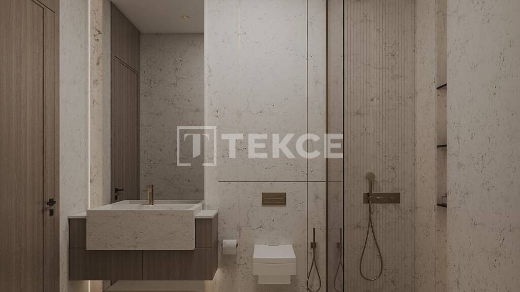 Das Projekt bietet sorgfältig gestaltete Innenräume, die modernes Wohnen neu definieren, und umfasst eine Reihe von Studios und Einzimmerwohnungen an. Jede Wohneinheit wurde mit viel Liebe zum Detail gestaltet und mit hochwertigen Materialien wie Eichenholz, Travertinfliesen, bronzefarbenen Metallakzenten und weißen Terrazzo-Oberflächen für eine anspruchsvolle Ästhetik ausgestattet. Die Wohnungen sind mit Einbauschränken und Küchengeräten ausgestattet, die Komfort und Stil gewährleisten. Die großzügigen Grundrisse werden durch große Fenster ergänzt, die atemberaubende Stadtlandschaften einrahmen und Innen- und Außenelemente nahtlos miteinander verbinden. Die Innenräume wurden mit Blick auf Funktionalität und Luxus gestaltet und verfügen über Oberflächen aus gebürstetem Messing, bronzefarbene Spiegel und elegante Tapetenakzente, die eine harmonische Mischung aus modernem Design und zeitloser Eleganz schaffen.