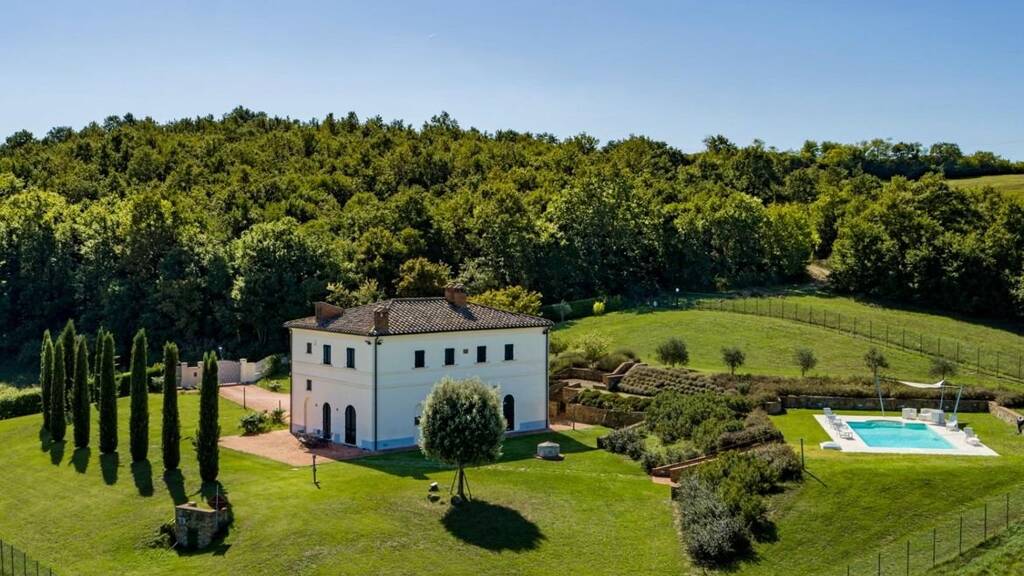 This fabulous villa with swimming pool located in a panoramic position is allocated in the municipality of Montepulciano but only 9 km from Pienza. The 360° view overlooks the splendid Tuscan panorama with the historical centre of Montepulciano and the suggestive Temple of San Biagio in front, and then Cortona, Castiglion Fiorentino, Arezzo and the small medieval village of Montefollonico.
