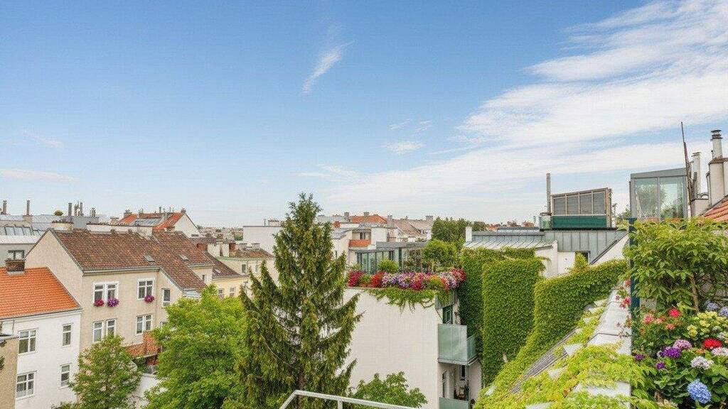 Zum Verkauf steht eine top-sanierte Dachgeschoßwohnung mit 4 Zimmer, 2 Bäder, Terrasse, Klimaanlage,... in einem Stilhaus.