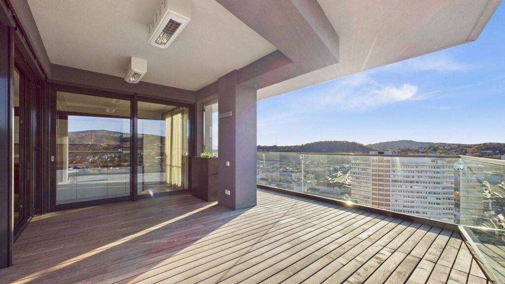 Hervorzuheben ist die von jedem Zimmer aus erschlossene Balkonfläche mit ca. 64,15 m², welche in U-Form situiert ist - Somit ist das Wandern mit dem Sonnenstand sowie ein einmaliger Panoramablick auf Stadt-Land-Fluss garantiert.