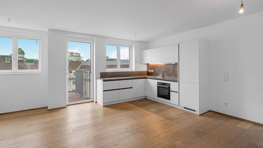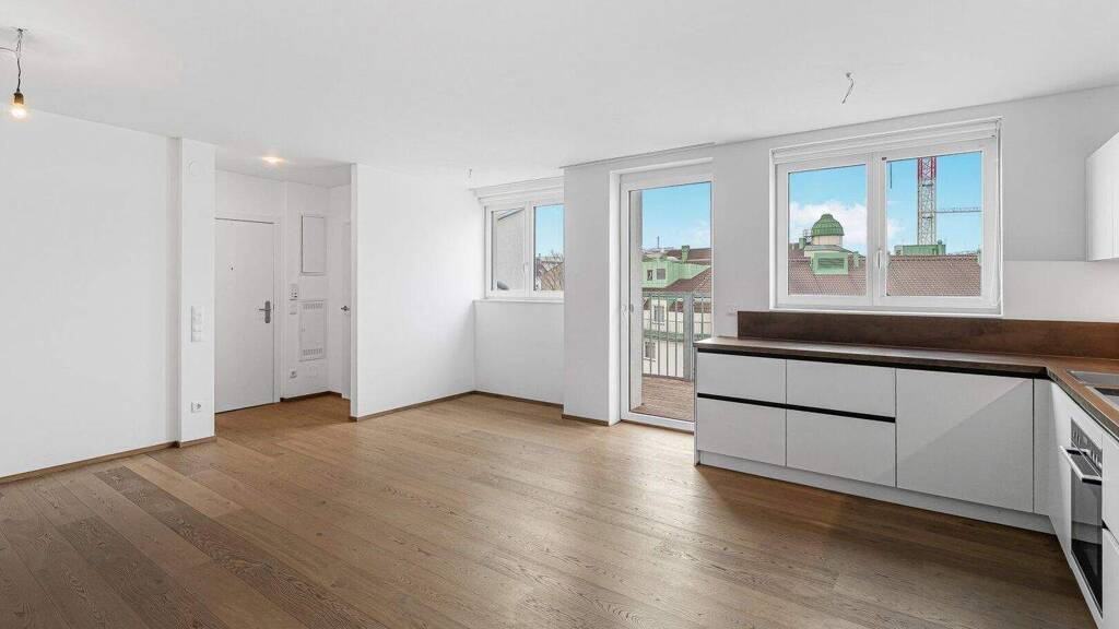 Die großzügige Wohnküche bildet das Herzstück und öffnet sich direkt zum Balkon - lichtdurchflutet, offen und ideal für Alltag und Entspannung.