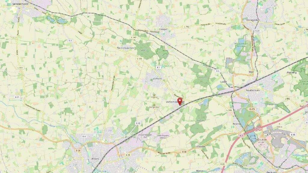 Die Verkaufsimmobilie befindet sich in ruhiger Wohnlage im Ahlener Ortsteil Vorhelm-Bahnhof, eingebettet in ein ländlich geprägtes, familienfreundliches Umfeld mit guter Verkehrsanbindung. Die Bundesstraßen und Autobahnen A2 und A1 sind schnell erreichbar und die Buslinie R51 sorgt für Anschluss an die Ahlener Innenstadt. Die Bushaltestelle "Vorhelm Bahnhof" befindet sich hierfür direkt vor der Haustür. Die Bahnhöfe Neubeckum und Münster erreichen Sie bequem mit dem Schnellbus S30, zu dessen Haltestelle Sie fußläufig in wenigen Minuten gelangen. Die Nachbarschaft ist geprägt von Wohnhäusern, einzelnen Gewerbebetrieben und ländlicher Struktur.