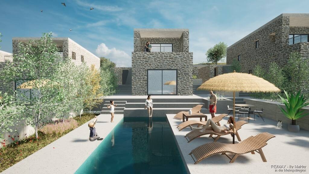 . Zweistöckige, neu gebaute Steinhäuser mit exklusiver Grundstücksfläche und privatem Pool.