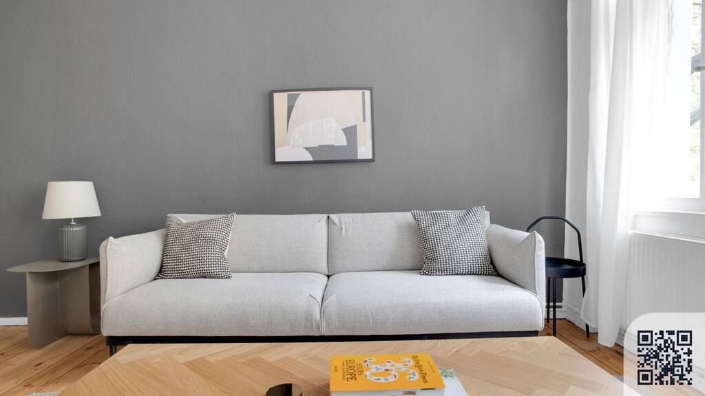 Wie bei jeder Blueground-Wohnung, findest du bei diesem 4-Zimmer-Objekt sorgfältig gestaltete Räumlichkeiten mit tollen Möbeln und einer voll ausgestatteten Küche vor. Und dank unserer hochqualitativen Matratzen hast du die Gewissheit, dich immer wie zu Hause zu fühlen. Wenn du dann für ein wenig Spaß bereit bist, kannst du dich von der Stimmung auf Berliner Straßen mitreißen lassen oder mit dem hochwertigen drahtlosen Lautsprecher oder Smart-TV das Entertainment zu dir nach Hause holen. Diese Wohnung verfügt über eine eigene Waschmaschine mit Trockner.