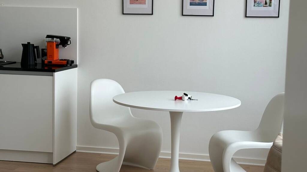 Diese neu modernisierte Wohnung bietet Platz für zwei Personen. Sie ist ausgestattet mit einem Boxspringbett (1,80 m x 2,00 m), Verdunklungsvorhängen im Schlafzimmer (vom Boden bis zur Decke), einer Essecke für zwei Personen und einer voll ausgestatteten Küche. Das Badezimmer ist mit Dusche, WC, Waschmaschine und Haartrockner ausgestattet. Die Fußbodenheizung in der gesamten Wohnung macht die Wohnung gemütlich. Superschnelles und zuverlässiges WiFi (über Glasfaser und schnelle Ubiquity-Zugangspunkte) - ideal für das Home-Office. Die Wohnung befindet sich im zweiten Stock und ist ohne Stufen über einen Aufzug zu erreichen. Es gibt einen großen Gemeinschaftsparkplatz vor dem Gebäude.