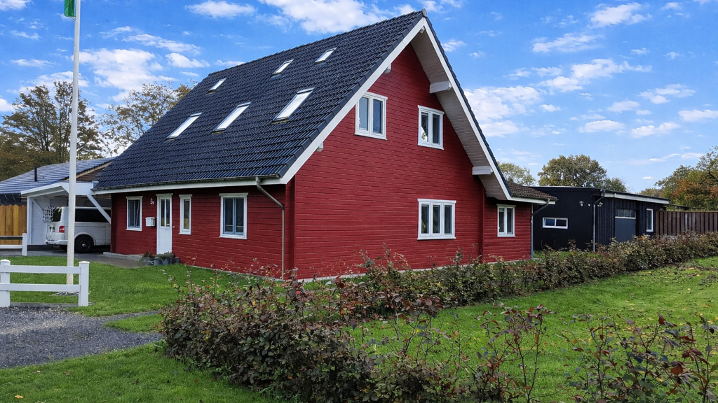 Zum Verkauf steht ein gemütliches Holzhaus in ruhiger und ländlicher Wohnlage im nordfriesischen Vollstedt. Das Haus wurde ca. 2004 in Holzbauweise errichtet und die Außenwände verfügen über eine gute Wärmedämmung. Die durchdachte Raumaufteilung mit seinen sechs Zimmern, wovon fünf als Schlafzimmern nutzbar sind, bietet Platz für eine Familie mit Kindern. Das Dach ist mit Pfannen eingedeckt und ebenfalls gut gedämmt. Die Fenster- und Türelemente sind stilistisch passend natürlich auch aus Holz gefertigt. Beheizt wird das Haus über einen Fernwärmeanschluss der örtlichen Biogasanlage. Das Haus verfügt über zwei Bäder, wobei das Bad im Erdgeschoss über eine Dusche, das im Dachgeschoss über eine Badewanne verfügt. Die Küche verfügt über eine großzügige Einbauküche mit viel Stauraum. Die offenen Balken im Wohnraum vermitteln eine besondere Gemütlichkeit. Vom Carport aus gelangen Sie trockenen Fußes durch den Nebeneingang ins Haus. Die kleine Halle auf dem Grundstück ist baugenehmigt und gedämmt und bietet somit vielfältige Möglichkeiten für Hobby, Beruf oder einfach als großzügige Stellfläche. Mit Auto oder Anhänger gelangen Sie problemlos dorthin. Ruhe und Entspannung finden Sie im großzügigen Garten oder auf der mit hochwertigen WPC-Dielen belegten Terrasse, die sie vom Wohnzimmer aus erreichen.