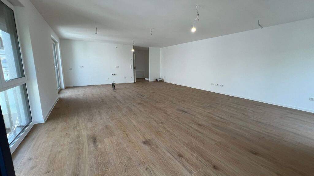 Der offene Wohn- und Essbereich (mit ca 50m²) erstreckt sich über die gesamte Tiefe der Wohnung und beeindruckt mit Weite, Licht und Blick ins Grüne. Die angrenzende Küche ist offen gestaltet, ein kleiner Balkon sorgt für zusätzlichen Komfort. Besonders attraktiv für moderne Küchennutzung: Die Anschlüsse für eine Kücheninsel sind bereits vorbereitet - so lässt sich hier ganz nach Wunsch ein kommunikativer Mittelpunkt gestalten. Der große Balkon am Wohnzimmerende erweitert den Wohnraum nach außen und bietet Naturblick ins angrenzende Grün.