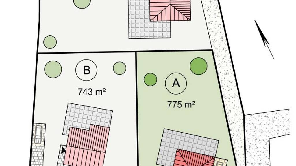 Bei diesem Grundstück handelt es sich um die Parzelle A mit 775 qm Größe. Optional ist es denkbar, das Grundstück A und B siehe Lageplan gemeinsam zu erwerben. Dann könnten hier auch ein kleines Mehrfamilienhaus oder ein Doppelhaus/Reihenhaus errichtet werden. Unsere Baufirma kann Ihr Wunschhaus individuell planen oder Sie wählen einen bestimmten Haustyp aus.