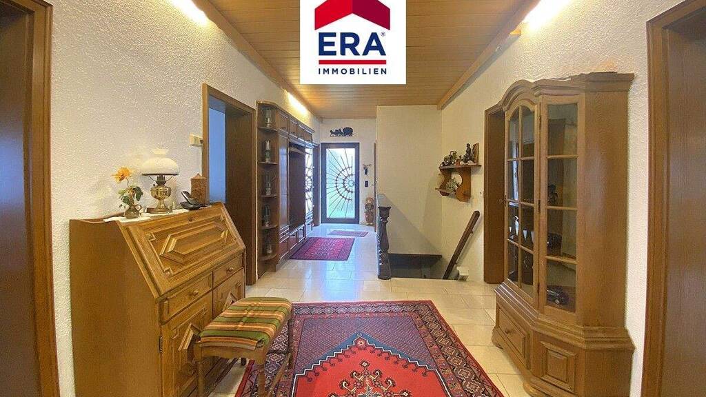 Im EG gelangen Sie über die großzügige Diele zu folgenden Räumlichkeiten: dem separaten WC mit Waschbecken, den 3 Schlafzimmern, wovon eines mit eingebautem Kleiderschrank ausgestattet wurde, dem Badezimmer mit Wanne, Dusche, Doppelwaschbecken, WC und Bidet, sowie der geräumigen Wohnküche mit Sitzbereich. Der großflächige Wohn-,/Essbereich mit gemütlichem Kamin und direktem Zugang zur Terrasse mit Garten, besticht durch seine Panoramafenster und schafft sofort eine wohltuende Atmosphäre.