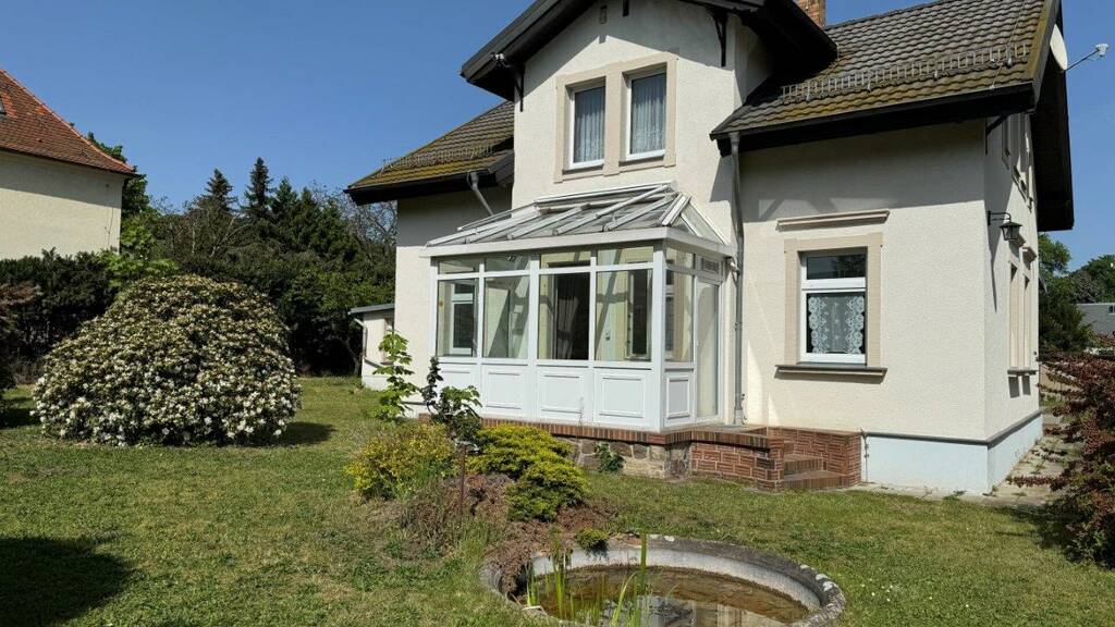 Zu verkaufen ist eine historische und modernisierungsbedürftige Einfamilienhausvilla mit Nebengebäuden, die etwa 1876 von dem bekannten Bauunternehmer Moritz Ziller als Landhaus im Schweizer Stil errichtet wurde. Das großzügige 1.333 m² große und sehr gepflegte Villengrundstu?ck befindet sich in guter Lage oberhalb von Radebeul-Ost am Fuße der Weinberge. Denkmalschutz besteht nicht. Das Gebäude zeigt die für die Gebrüder Ziller typischen Stilelemente einer italienisierten Neorenaissance und besteht aus zwei winklig zueinander ausgerichteten Baukörpern, zum einen das dominierende Wohnhaus mit einem historischen Veranda-Anbau und dem neuen Wintergarten und zum anderen das eingeschossige Seitengebäude.