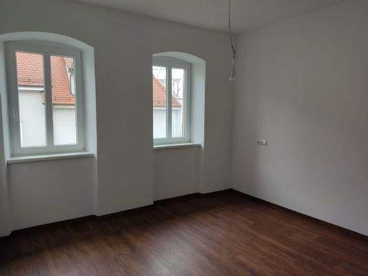 neuwertige Wohnung mit einem großen Wohn-/Küchen-Essbereich, 2 Zimmern, Bad, Abstellraum, Balkon.
