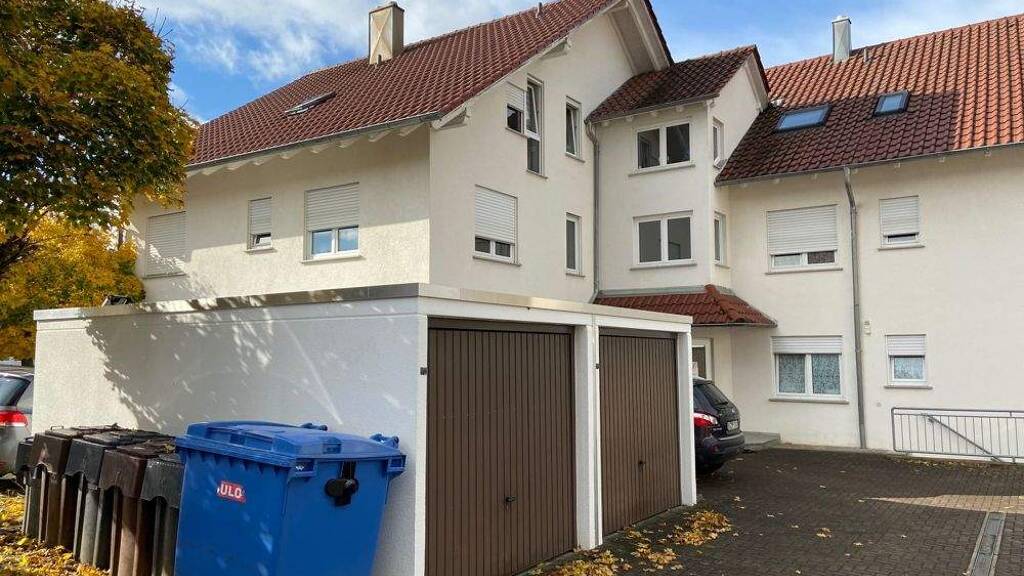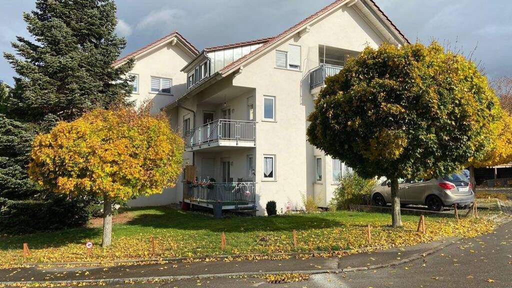 Die Wohnung liegt im 1. OG (links vom Eingang) des massiven 6-Familienhauses, Bj. 1992 in Balingen-Dürrwangen im Wohngebiet "Hebsack".