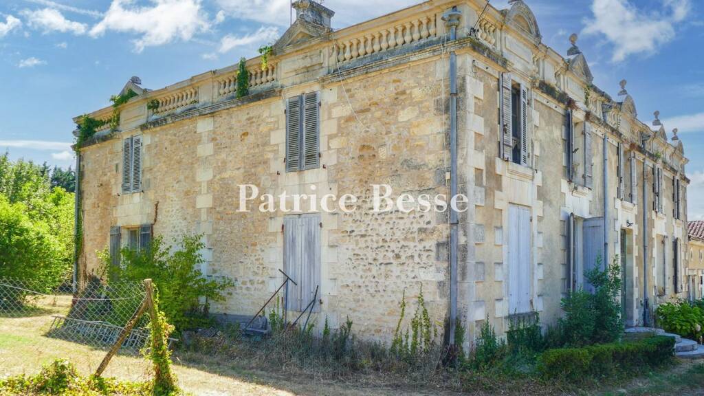 A 19th century manor house in need of renovation and its outbuildings, set in 23 hectares of wooded land between Saintes and Cognac, in the Charente d