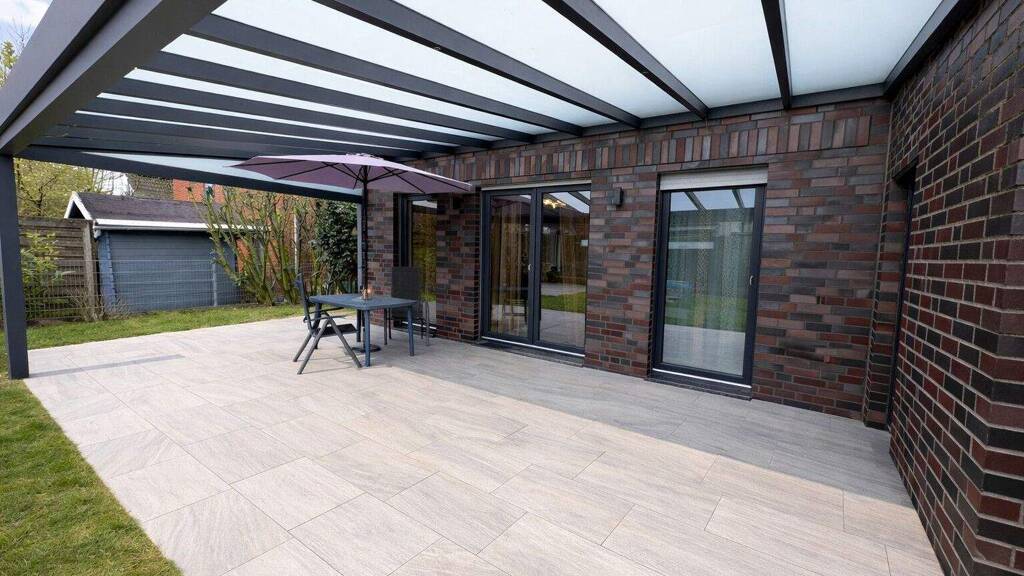 Ein besonderes Highlight ist der direkte Zugang zur Terrasse, die mit einer hochwertigen Terrassenüberdachung ausgestattet ist - ideal für entspannte Sommerabende oder gesellige Stunden mit Familie und Freunden.