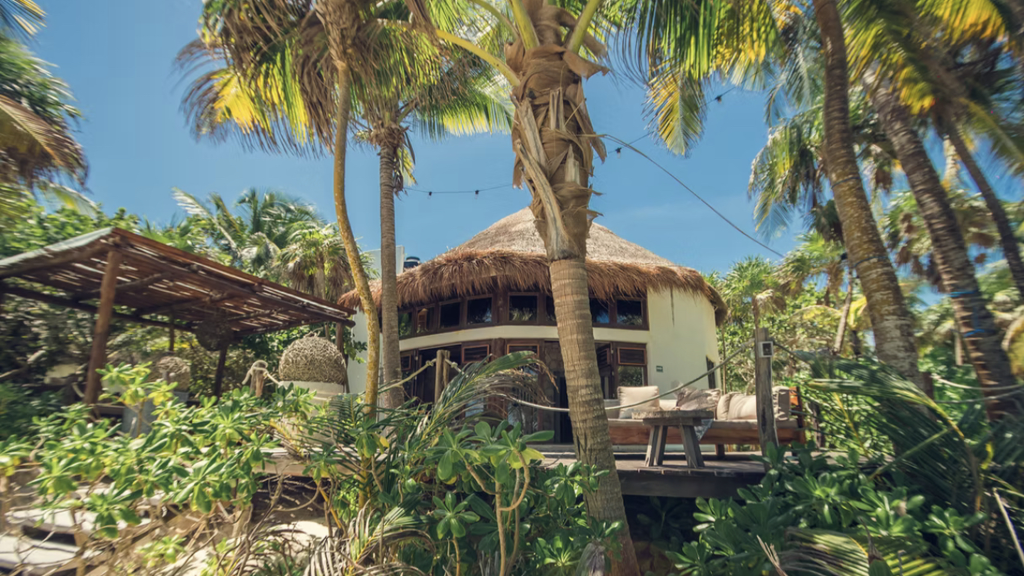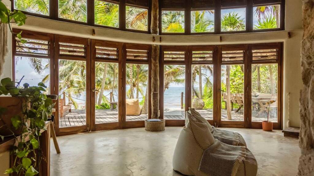 Das Hotel liegt in der Nähe von Be Tulum und Casa Malca, in der exklusivsten und unberührtesten Gegend von Tulum Beach. Die Häuser liegen zwischen einem wunderschönen Feld autochthoner Palmen mit einer offenen Veranda mit direktem Blick auf den privaten 35 Meter breiten Sandstrand. Das Anwesen bietet einen spektakulären Blick auf das Meer und ist der ideale Ort, um Privatsphäre, Ruhe und erstaunliche Sonnenaufgänge zu genießen.