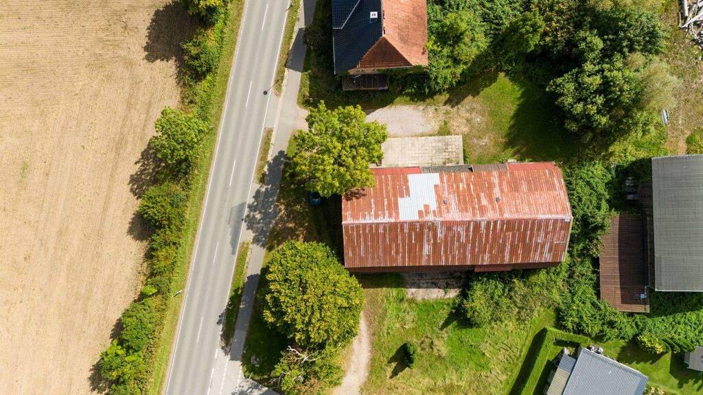 Das zum Verkauf stehende 1.295 m² große Grundstück ist aktuell mit einer Scheune bebaut. Die großzügige Scheune beinhaltet noch eine kleine Wohnung, welche sich in der Vermietung befindet.