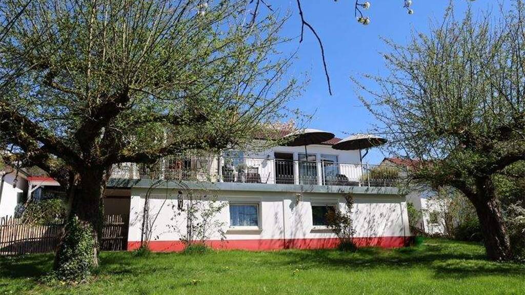Das angebotene, gemütliche Einfamilienhaus mit einem wunderschönen, nicht einsehbaren Garten befindet sich auf einem Grundstück mit ca. 842 m² in einer absolut sonnigen und ruhigen Wohnlage. Das voll unterkellerte Haus wurde 1967 erbaut. Insgesamt stehen ca.151,85 m² Wohnfläche auf 2 Ebenen zur Verfügung. Die Wohnung im Erdgeschoss verfügt über 4 Zimmer und einen wunderschönen Kaminofen im Wohn-/Essbereich. Große, bodentiefe Fensterfronten lassen viel Licht in jeden Raum. Von 3 der 4 Zimmer haben Sie jeweils einen Ausgang auf den wunderschönen, sonnigen, nach Süden ausgerichteten Balkon (zum Teil überdacht) mit Blick in den schönen großen Garten. Das Badezimmer auf dieser Ebene wurde vor einigen Jahren liebevoll renoviert. Vom Flur erreicht man über eine Holztreppe die 4 Zimmer und das Duschbad im Terrassengeschoss. Diese geräumigen Zimmer verfügen alle über große Fensterfronten und lassen viel Licht und Helligkeit in alle Räume. Das Duschbad auf dieser Ebene rundet das Bild vom gemütlichen Wohnen ab. Des Weiteren befindet sich auf dieser Ebene des Gebäudes noch ein Waschmaschinenraum sowie ein Kellerraum.