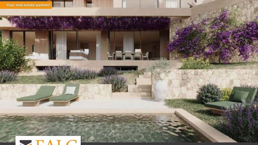 Eingebettet in die prestigeträchtige Enklave von Old Bendinat, präsentieren wir diese einzigartige Neubau-Villa auf einem aussergewöhnlichen 752 m2 grossen Grundstück mit fantastischem Meerblick. Die beeindruckende und nach Südwesten ausgerichtete Immobilie zeichnet sich durch ein offenes Design aus, das Küche, Esszimmer und Wohnzimmer nahtlos miteinander verbindet und so einen harmonischen Fluss für den modernen Lebensstil schafft. Grosse Glastüren führen auf eine sonnenbeschienene Terrasse, auf der ein kristallklarer Salzwasser-Swimmingpool von einem mediterranen Garten mit einheimischer Flora, Bäumen und einem automatischen Bewässerungssystem eingerahmt wird. Eine überdachte Aussenküche mit Pergola und ein Essbereich eignen sich perfekt für sommerliche Zusammenkünfte. Im Erdgeschoss befindet sich auch eine luxuriöse Schlafsuite, die Privatsphäre und Komfort bietet. Im ersten Stock befindet sich das Hauptschlafzimmer, ein Refugium der Raffinesse, mit eigenem Wohnzimmer, opulentem Bad und Balkon. Zwei weitere Doppelschlafzimmer, jedes mit eigenem Bad, blicken auf den schönen Garten. Die oberste Etage verfügt über eine 72 m2 grosse Dachterrasse mit atemberaubendem Panoramablick auf Bendinat. Weitere Ausstattungsmerkmale: Kamin, doppelt verglaste Fenster, elektrische Fensterläden, Steinböden, Zentralheizung, Einbauschränke, Ankleidezimmer, Garage für 2 Fahrzeuge, ein Aussenstellplatz und vieles mehr.