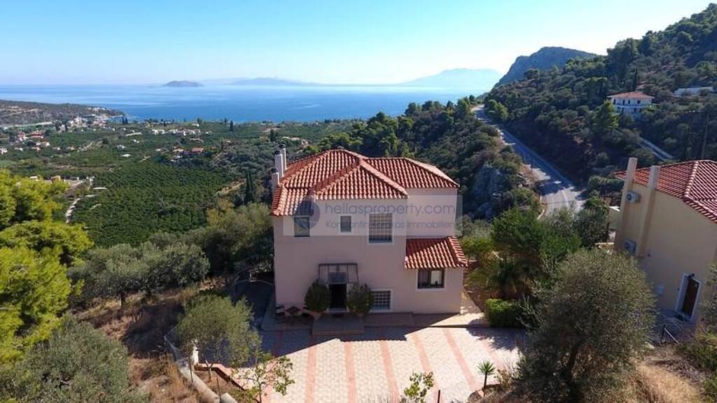 In einer wunderschönen Lage nahe Neu Epidauros , liegt dieses schön gelegene Einfamilienhaus mit Panoramablick über Meer & Landschaft in einem malerischen Dorf.