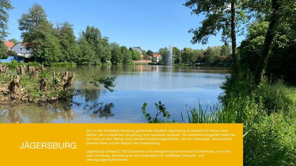 Der zu der Kreisstadt Homburg gehörende Stadtteil Jägersburg ist bekannt für seine vielen Weiher, die in wäldlicher Umgebung zum spazieren einladen.