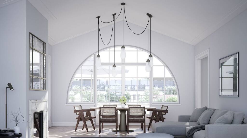 Ein komfortabler Aspekt der Wohnung ist sicherlich der diskrete, unmittelbare Zugang über den Aufzug in die eigene Wohnung. Die höchstgelegene Haltestelle: das Penthouse! Es wurde bis ins Detail als nobler Rückzugsort konzipiert. Ein großes Bogenfenster ermöglicht gleich beim Betreten der Wohnung einen freien Blick in den Himmel. Fast alle anderen Fenster sind bodentief und geben Zutritt auf die beiden Dachterrassen, die jeweils über die gesamte Wohnungsbreite verlaufen. Säulen unterstreichen das angenehme Flair, die Dreiecksform des Ziergiebels setzt sich in den Dachschrägen des Wohnzimmers fort. In diesem Penthouse kommen nur hochwertige Materialien zum Einsatz. So etwa Massivholzfenster, geöltes Eichenparkett, Fußbodenheizsystem, polierte Messingbeschläge oder die formschönen Türgriffe im Design der Bauhaus-Architekten Gropius und Meyer. Der sorgfältig geplante Grundriss lässt viel Raum für Gemeinsamkeit, aber auch Rückzug. Die Flügeltüren schaffen wohltuende Sichtachsen. Neben den hellen Wohnräumen gibt es einen Ankleideraum und einen Hauswirtschaftsraum bzw. Hauswirtschaftsschrank. In Masterbad, Duschbad und Gäste-WC ist Naturstein Pietra Grigia verlegt, hochwertige Keramik und Armaturen vollenden den edlen Look. Zwei separat zu erwerbende Tiefgaragen-Stellplätze sowie ein Kellerraum runden das Angebot ab.