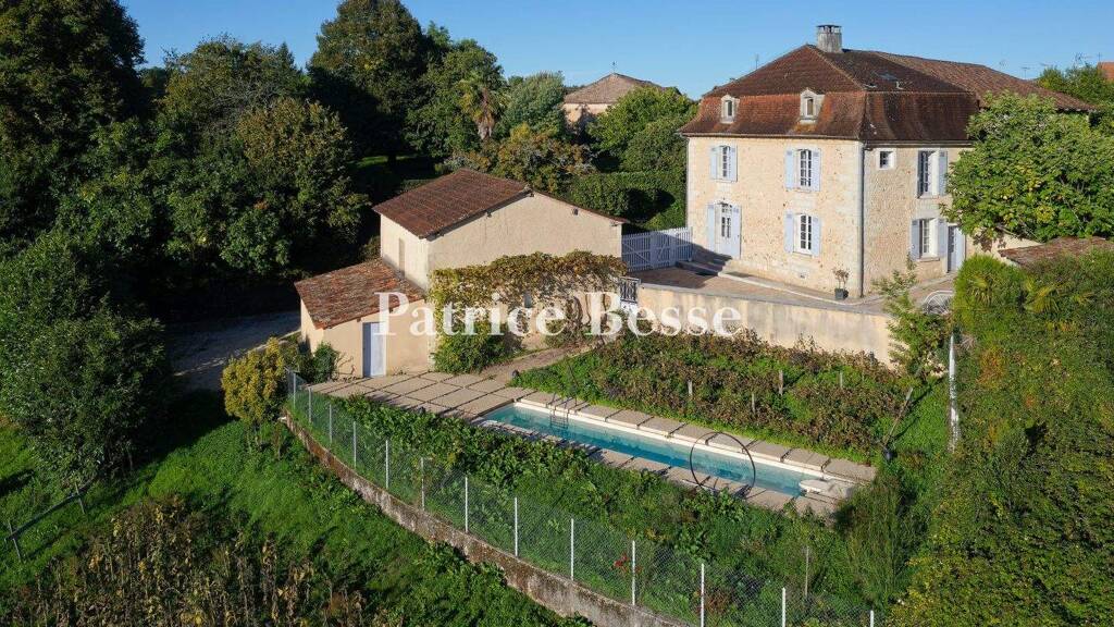 A renovated house with outbuildings, an orchard and a lap pool, overlooking the River Dronne valley near the town of Ribérac in France's beautiful Pér